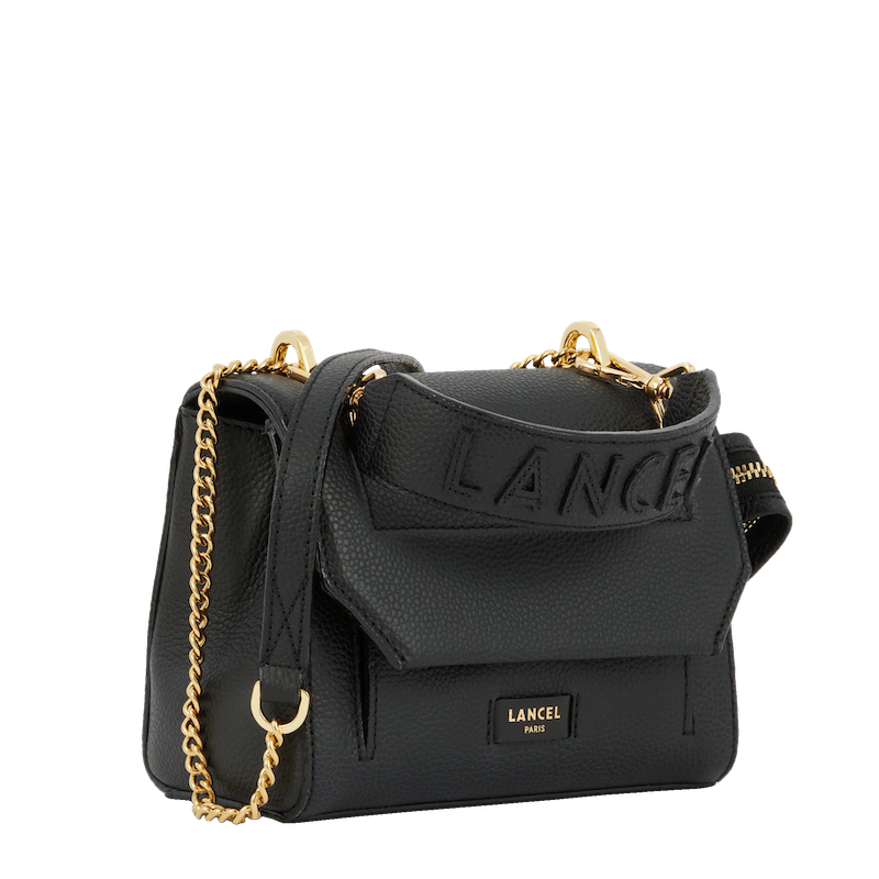 Jeune et accessible, Ninon de Lancel est notre ligne de sacs mode et urbains, à porter de jour comme de nuit. Moderne et multifacette avec sa bandoulière chaîne et cuir coulissante offrant un multi-portés ingénieux, Ninon de Lancel se caractérise par son style graphique et affirmé. Eléments signature de cette ligne à forte personnalité, la poignée maxi logo, les détails bombés et le zip asymétrique lui confèrent un look rock et tendance. Les sacs sont confectionnés dans un cuir de vachette au grain rond et léger, offrant un rendu structuré et souple à la fois.