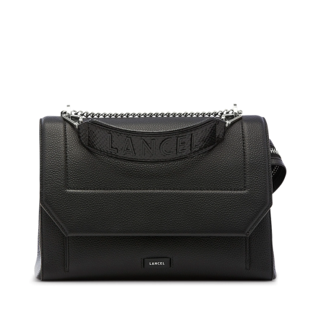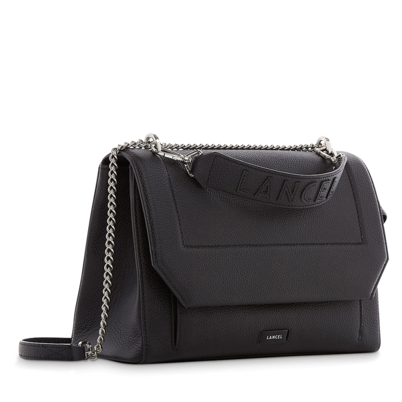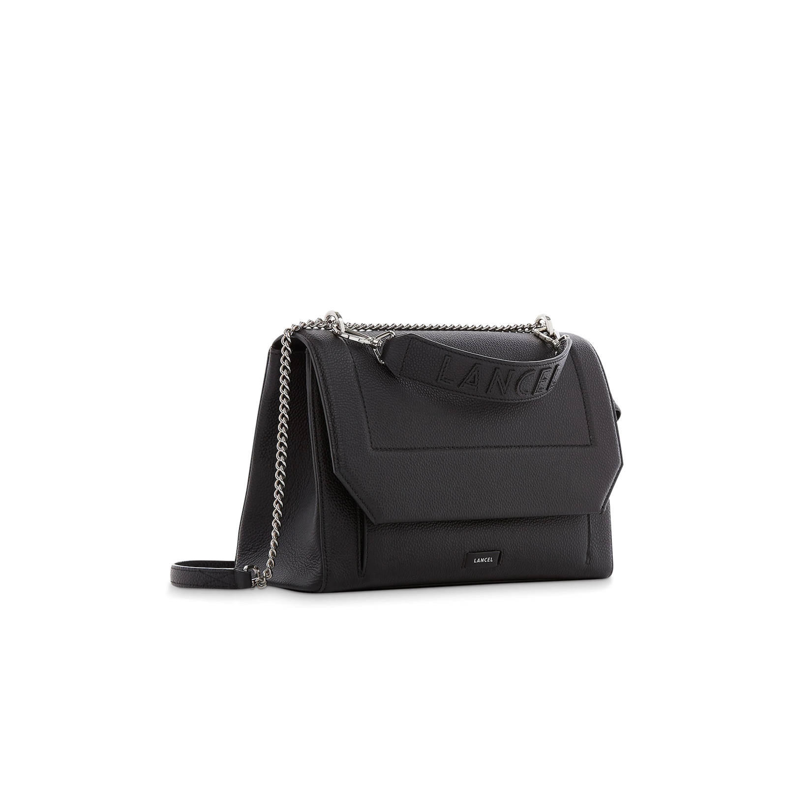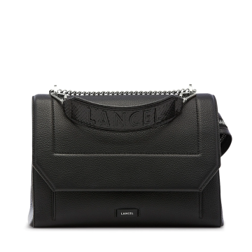 Jeune et accessible, Ninon de Lancel est notre ligne de sacs mode et urbains, à porter de jour comme de nuit. Moderne et multifacette avec sa bandoulière chaîne et cuir coulissante offrant un multi-portés ingénieux, Ninon de Lancel se caractérise par son style graphique et affirmé. Eléments signature de cette ligne à forte personnalité, la poignée maxi logo, les détails bombés et le zip asymétrique lui confèrent un look rock et tendance. Les sacs sont confectionnés dans un cuir de vachette au grain rond et léger, offrant un rendu structuré et souple à la fois.