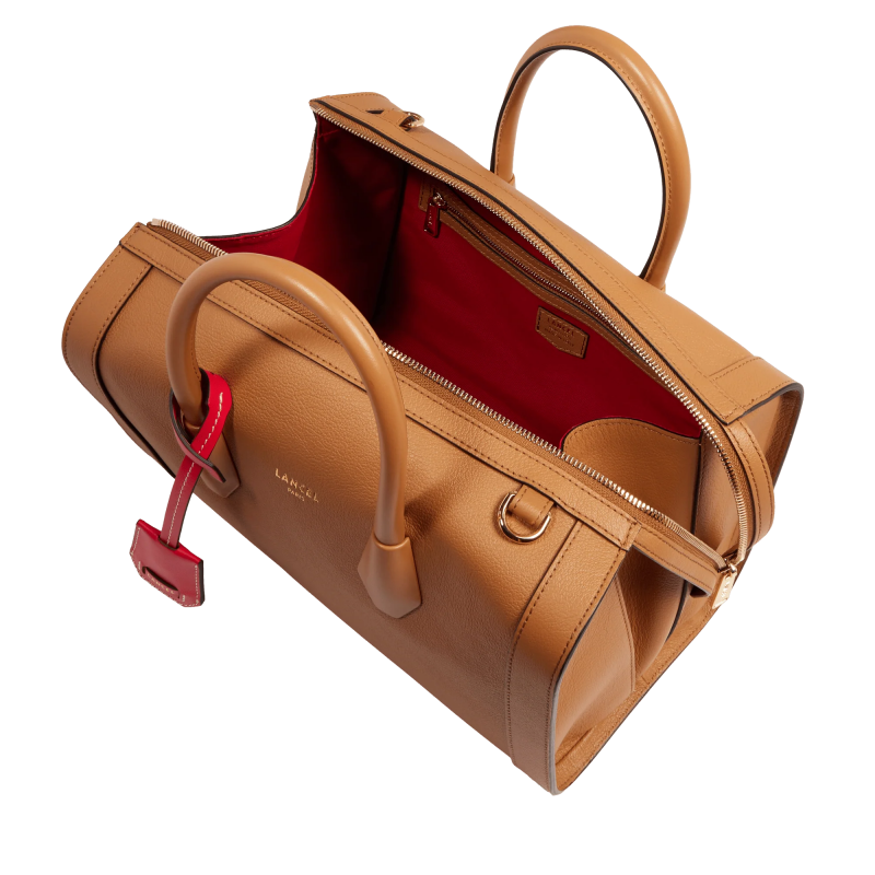 - Sur le fond : 4 pieds de fond métal, Surpiqûres motif DOUBLE L, Logo 'LANCEL PARIS' marqué à chaud à sec