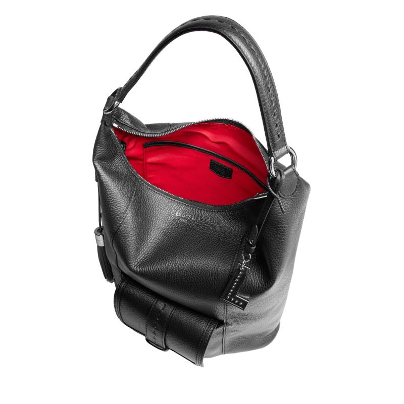 - Bandoulière cuir, ajustable (boucle) & amovible