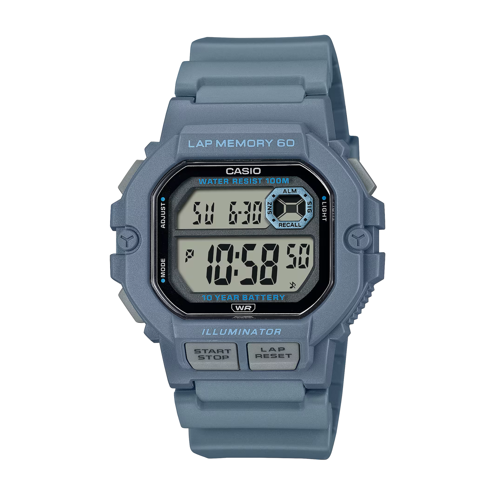 Tire le meilleur parti de tes séances d’entrainement avec une montre dotée d’une mémoire de 60 temps par tour. Parce qu’elle est dotée d’un grand écran LCD et que le chronomètre est facilement accessible via un bouton situé à l’avant, la montre est idéale pour la course à pied. Son étanchéité jusqu’à 10 bars lui permet d’affronter la pluie sans aucun soucis et l’éclairage LED garantit une excellente lisibilité, même dans l’obscurité. Son boîtier octogonal ultra résistant et sa pile, dont la durée de vie est d’environ 10 ans, lui permettent de braver les épreuves du temps. Dotée de nombreuses fonctionnalités idéales pour l’entrainement sportif, c’est un accessoire parfait pour rester concentrer sur tes objectifs.