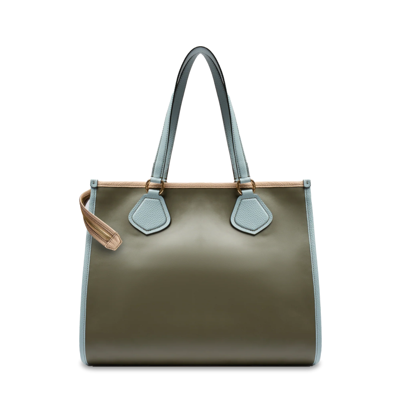 À l'extérieur, le sac a une petite poche plaquée de chaque côté. Le sac a deux poignées de transport, ainsi qu'une longue bandoulière réglable incluse.