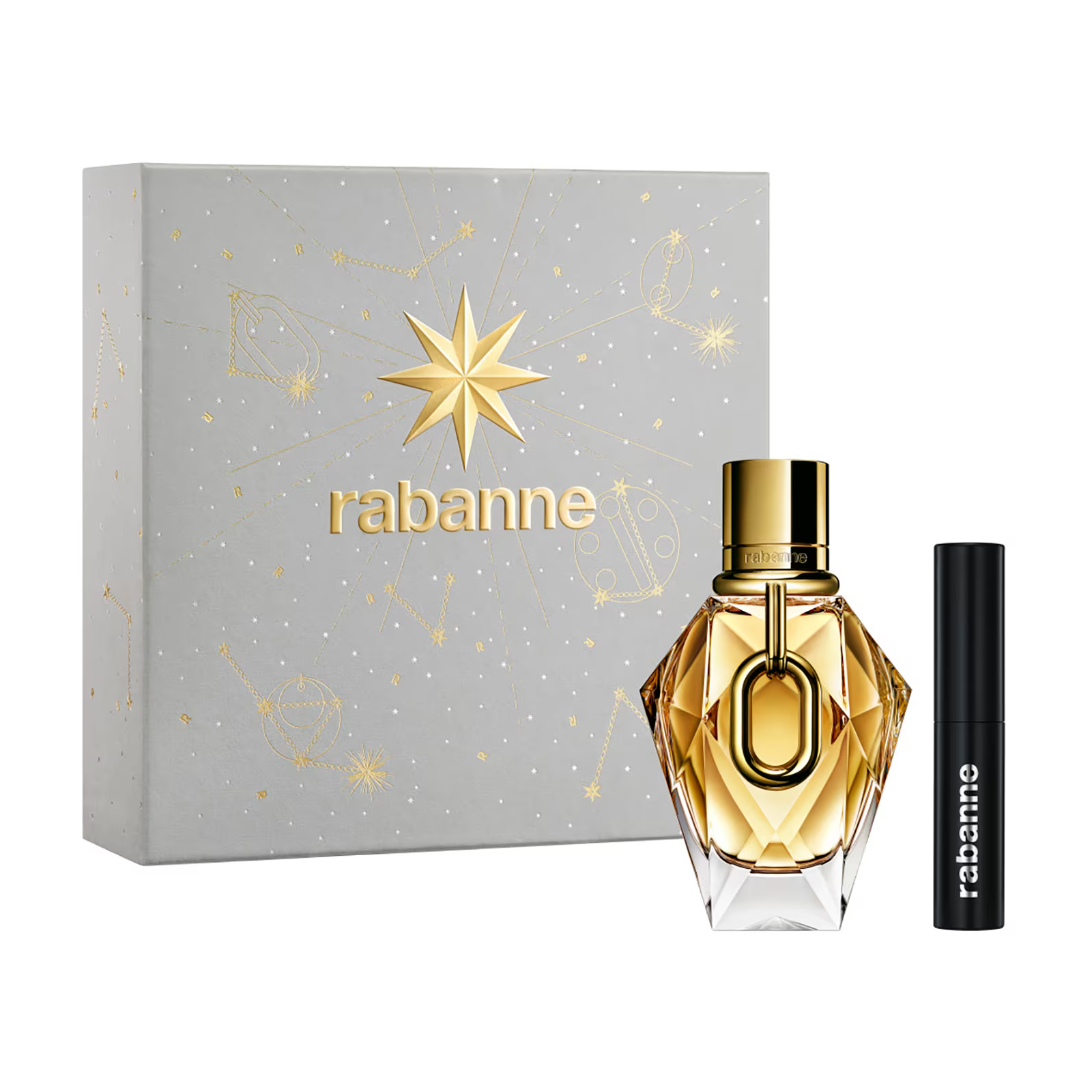 - Million Gold for Her EDP: ALCOHOL DENAT., PARFUM (FRAGRANCE), AQUA (WATER), LINALOOL, ALPHA-ISOMETHYL IONONE, LIMONENE, BUTYL METHOXYDIBENZOYLMETHANE, CITRONELLOL, HYDROXYCITRONELLAL, COUMARIN, ALCOHOL, CITRAL, BENZYL BENZOATE, TRIS(TETRAMETHYLHYDROXYPIPERIDINOL) CITRATE, GERANIOL, METHYL 2-OCTYNOATE, BENZYL ALCOHOL, CI 19140 (YELLOW 5), CI 14700 (RED 4). Rockstar Mascara: AQUA (WATER), HYDROXYPROPYL STARCH, GLYCERYL STEARATE, C18-36 ACID TRIGLYCERIDE, COPERNICIA CERIFERA (CARNAUBA) WAX, RICINUS COMMUNIS (CASTOR) SEED OIL, GLYCERIN, VP/HEXADECENE COPOLYMER, PALMITIC ACID, RHUS VERNICIFLUA PEEL WAX, STEARIC ACID, PROPANEDIOL, 1,2-HEXANEDIOL, OCTYLDODECANOL, HYDROXYACETOPHENONE, SODIUM HYDROXIDE, XANTHAN GUM, CAPRYLIC/CAPRIC TRIGLYCERIDE, ORYZA SATIVA (RICE) BRAN WAX, CAPRYLHYDROXAMIC ACID, PISTACIA LENTISCUS (MASTIC) GUM. [ (+/-) MAY CONTAIN: CI 77491, CI 77492, CI 77499 (IRON OXIDES), CI 77007 (ULTRAMARINES) ].