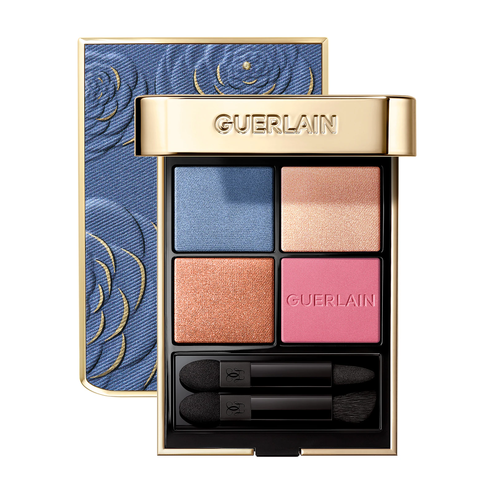 Dans le cadre de la collection Blooming Denim, Guerlain s'est associé à Nona Source pour réinventer l'iconique Ombres G, palette d'ombres à paupières quatre couleurs. Cette édition exclusive met à l'honneur le denim upcyclé, issu de chutes de tissus de grandes maisons de couture.